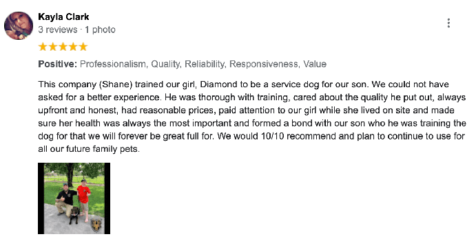 Bellum K9 Owner, Shane McNamara, served as a presidential K9 handler for the United States Air Force for 6 years. As a Security Forces Sergeant, Shane and his K9 partners served under both the Trump and Obama administrations. After his honorable discharge from the military, Shane founded Bellum K9 and has since trained thousands of dogs. His biggest accomplishment was a completing a contract with the Department of Defense where he was responsible for implementing a K9 detection program for the country of Palau in the South China sea. However, if you ask him, he will tell you his favorite accomplishment was training a service dog for a little boy with Autism and Cystic Fibrosis who goes everywhere with her boy.