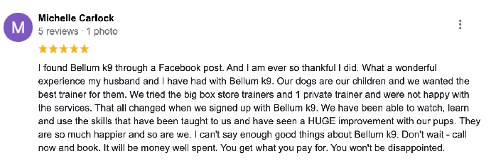 We provide a variety of different private training programs ranging between $1,500 to $2,500. It just depends on your dog’s current behavior, your goals and how quickly you want to transform your dog!